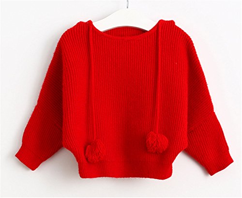 SnoLyni (JP) キッズセーター ベビージャンパー カットソー ニットメリヤス編み上げ アウター 羽織り キッズ 服 子供 春秋 女の子 ガールズ カジュアル 通学 (100cm, レッド)