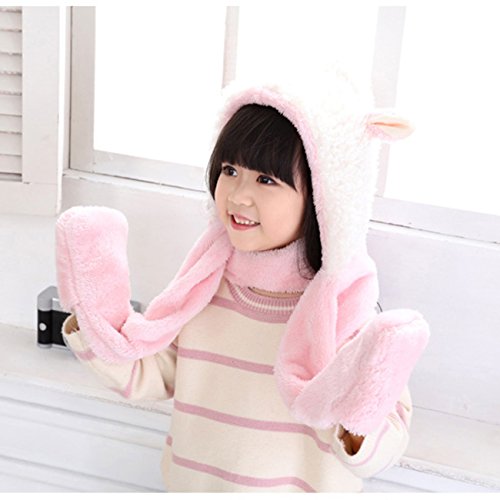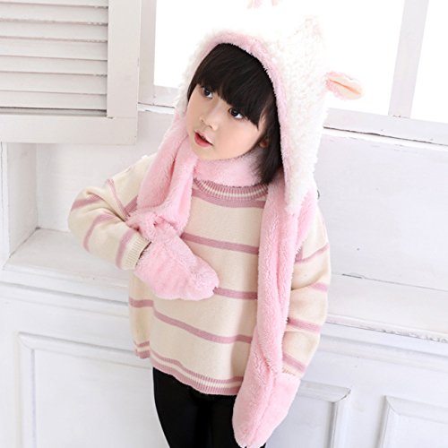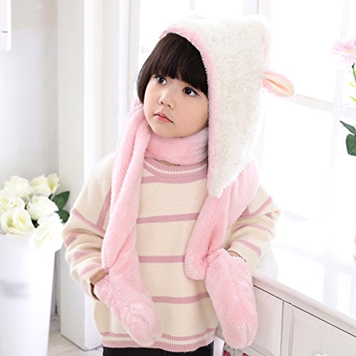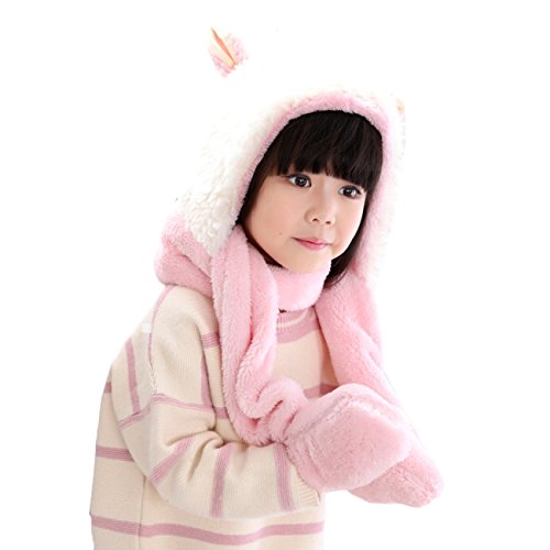 Snone可愛い キッズ帽子 マフラー 手袋セット フード付きマフラー フード付きスヌード 手袋付き 子供 可愛い ウサギ 耳付き マフラー モコモコ 厚手