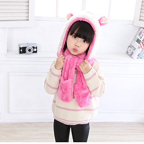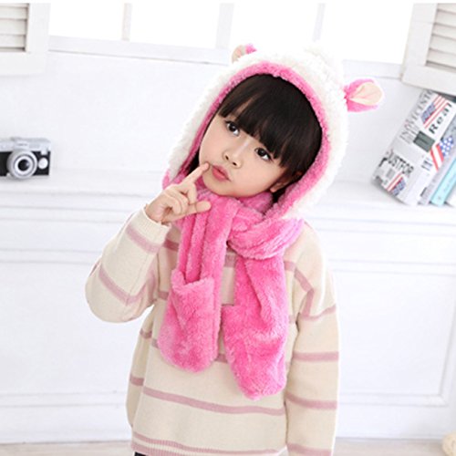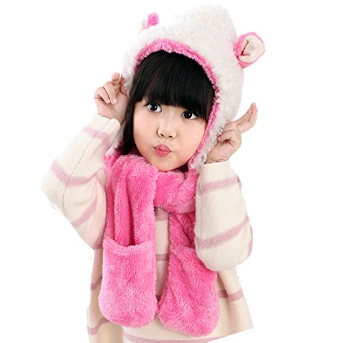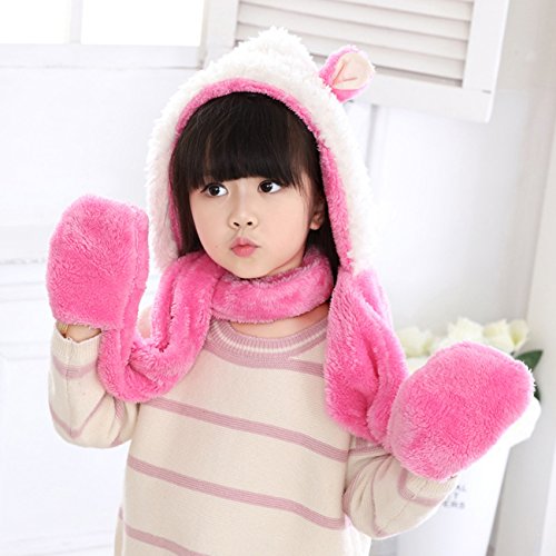 Snone可愛い キッズ帽子 マフラー 手袋セット フード付きマフラー フード付きスヌード 手袋付き 子供 可愛い ウサギ 耳付き マフラー モコモコ 厚手