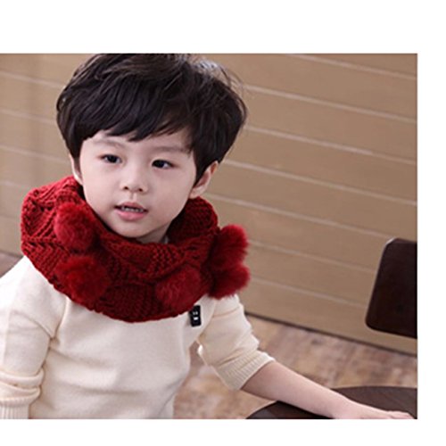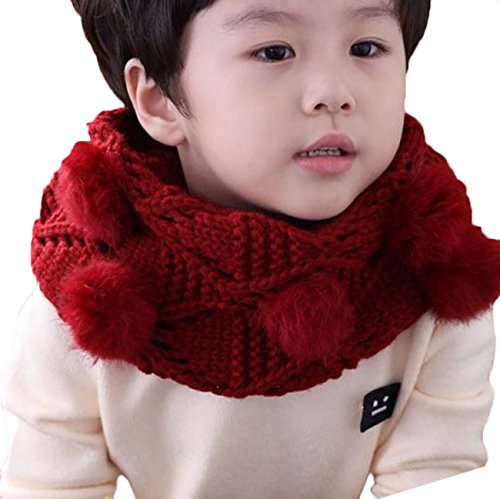Snoneキッズ スヌード ニット ネックウォーマー 子ども マフラー ストール 秋 冬 かわいい 毛玉付き ベビー 防寒 ふわふわ あったか ファッション 男の子 女の子 おしゃれ