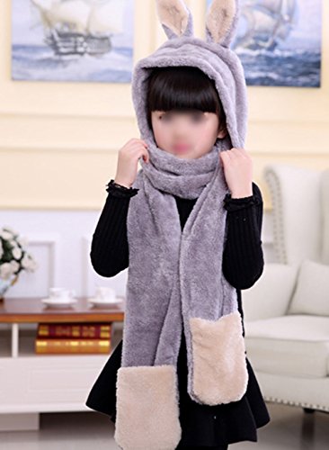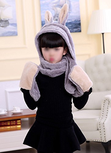 Snone子供用 ウサギデザイン かわいい 多機能 帽子 マフラー 手袋 耳覆い機能 スカーフ グローブ ふわふわ 防寒対策 キッズ 女の子対応 ワンピース
