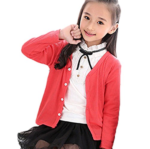 Snone子供服 シンプル 無地 カーディガン 長袖 ニット セーター 女の子 男の子 兼用 vネック 防寒 春秋 通学 普段着