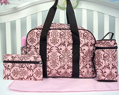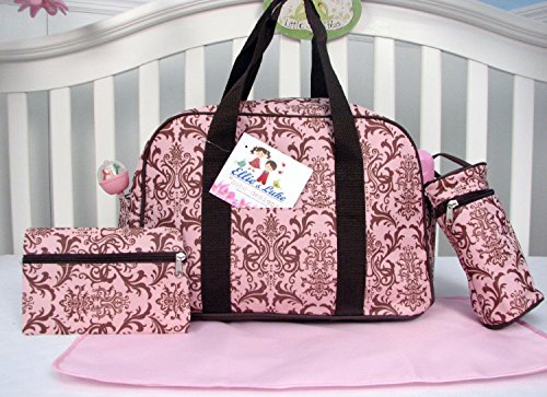 10 Piece Set Includes:(1)Crib Quilt ,(1)Crib Bumper Both Comforter and bumper are Reversible Into Morden Pink & Brown Polka Dot Designs !;(1)Fitted Sheet,(1)Crib Skirt (Dust Ruffle),(1)Diaper Stacker, (2)of Window Valances;(1)Toy Bag ,(1)Baby Pillow, (1)Baby Bib. This set is make of 100% Cotton;3 pcs Diaper Bag with Changing Pad & Bottle Case;This set fits all Standard Baby cribs and Toddler Bed!