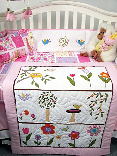 SoHo Pink Summer Bird Songs Baby Crib Nursery Bedding Set 13 pcs included Diaper Bag with Changing Pad & Bottle Case