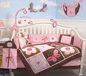 SoHo Pink and Brown Sweetie Garden Baby Crib Nursery Bedding Set 13 pcs included Diaper Bag with Changing Pad & Bottle Case
