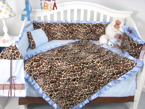 SoHo Soft Blue Giraffe Minky Baby Crib Nursery Bedding Set 13 pcs included Diaper Bag with Changing Pad & Bottle Case by SoHo Designs