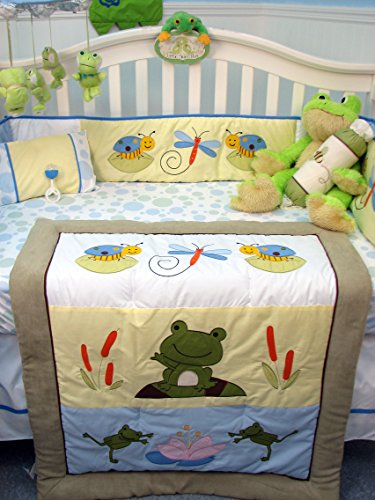 SoHo Leap Froggies Baby Nursery Infant Crib Nursery Bedding Set 14 pcs included Diaper Bag with Changing Pad & Bottle Case