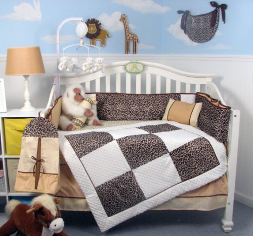 10 Piece Set Includes:(1)Crib Quilt ,(1)Crib Bumper, (1)Fitted Sheet,;(1)Crib Skirt (Dust Ruffle),(1)Diaper Stacker, (2)of Window Valances,;(1)Toy Bag ,(1)Baby Pillow, (1)Baby Bib - This set is make with 100% Cotton.;4 pcs Diaper Bag with Changing Pad , Bottle Case and accessory case;This set fits all Baby cribs and Toddler Bed!
