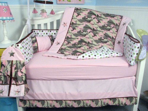 SOHO Girl Camo Baby Crib Nursery Bedding Set 13 pcs included Diaper Bag with Changing Pad & Bottle Case