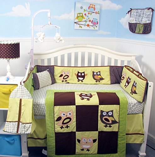 10 pieces micro suede: Comforter, Dust Ruffle, Fitted Crib Sheet, 4 side Bumper Padding, Baby Bib, Toy Bag, 2 Valances, Diaper Stacker and Baby Pillow!, 3 pcs Diaper Bag with Changing Pad & Bottle Case, Fits all Toddler Beds and Cribs (Single or Convertible) (USA, UK, AU, Etc..) !