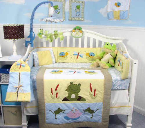 SoHo Froggies Pond Baby Infant Crib Nursery Bedding Set 13 pcs included Diaper Bag with Changing Pad & Bottle Case by SoHo Designs
