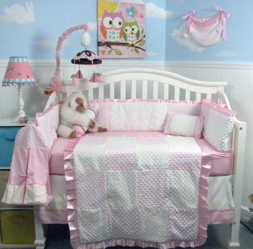 New Pink Minky Dot Chenille Baby Crib Nursery Bedding Set 13 pcs included Diaper Bag with Changing Pad & Bottle Case by SoHo Designs