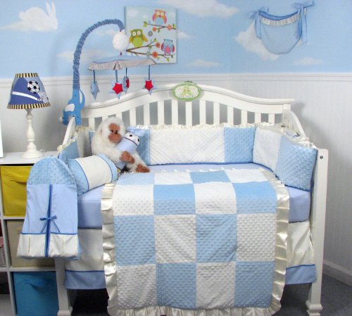 New Blue Minky Dot Chenille Baby Crib Nursery Bedding Set 13 pcs included Diaper Bag with Changing Pad & Bottle Case by SoHo Designs