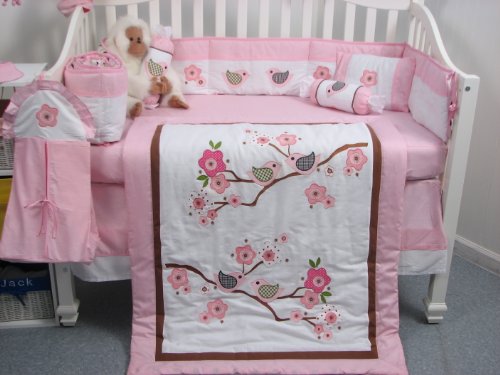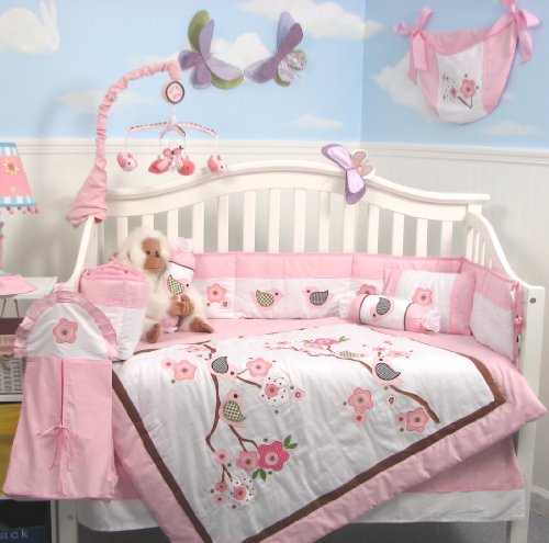 SoHo Love Birds Story Baby Crib Nursery Bedding Set 13 pcs included Diaper Bag with Changing Pad & Bottle Case