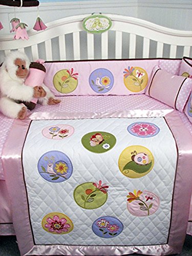10 Piece Set Includes:(1)Crib Quilt ,(1)Crib Bumper;(1)Fitted Sheet,(1)Crib Skirt (Dust Ruffle),(1)Diaper Stacker;(2)of Window Valances ,(1)Toy Bag ,(1)Baby Pillow, (1)Baby Bib.;4 pcs Diaper Bag with Changing Pad & Bag straps;This set fits all Baby cribs and Toddler Bed!