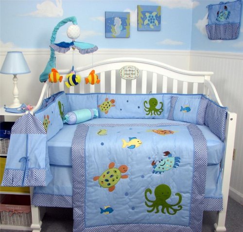 SoHo Sea Life Baby Crib Nursery Bedding Set 13 pcs included Diaper Bag with Changing Pad & Bottle Case