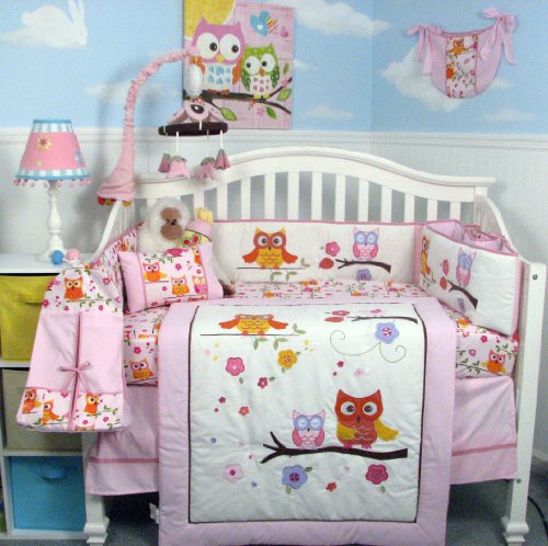 SoHo Pink Dancing Owl Baby Crib Nursery Bedding Set with Diaper bag 14 pcs set by SoHo Designs