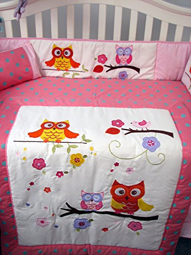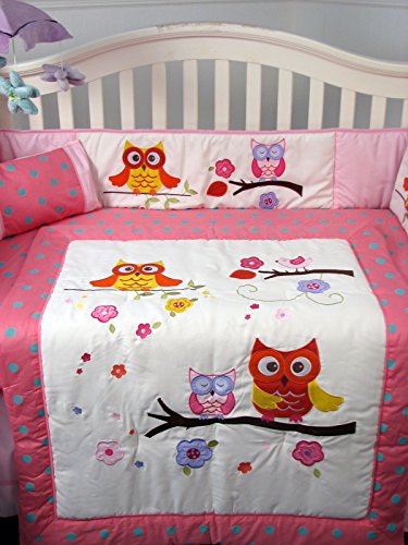 SoHo Pink Dancing Owls Baby Crib Nursery Bedding Set 4 pcs + 4 pcs Diaper Bag set (Total 8 Pcs Set)