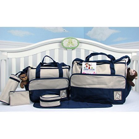 SoHo 8 pieces set of diaper bag. Made of 100% Nylon, easy to wipe clean, 1. Extra roomy main compartment with multipe pockets ,Reliable zip-top closure with carrying strap, 2. Mid-Size Tote bag with zipper closure and shoulder strape for busy mom on the go., 3.Matching Padded changing station, 4. small accessory case, 5. A pair of Grips strollers attachments., 6. zippered wipes case, 7. Insulated zippered bottle bag, fits any size bottle, 8. SoHo Diaper Bag Insert Organizer;Ideal for storage baby's diapers, toys, water bottles, snack, small towels, etc. * Please All items in the insert orgainzer are not included, They're for picture purpose only *