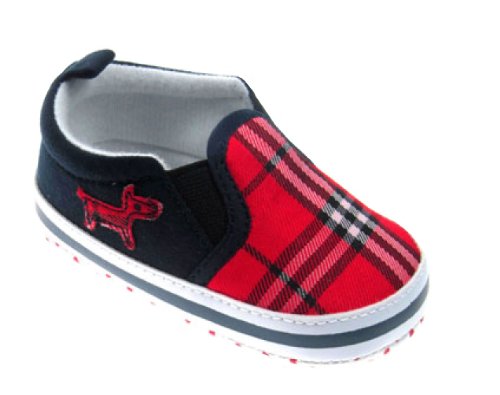 ベビー男の子Slip On Shoes With Red Tartan Print 0 – 3ヶ月( 3.5 CM )