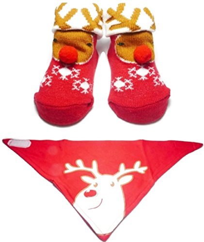 Reindeer Bandana Bib & Socks 0-6 Months by Soft Touch [並行輸入品]