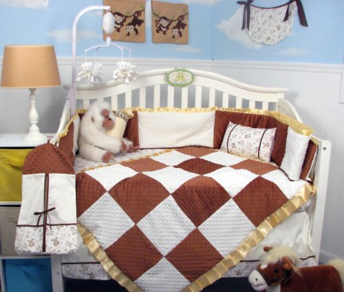 - SoHo 14 Pieces Toffee Brown & white Minky Chenelle Baby Crib Nursery Bedding Set 13 pcs included Diaper Bag with Changing Pad & Bottle Case **Limited time Special ! **