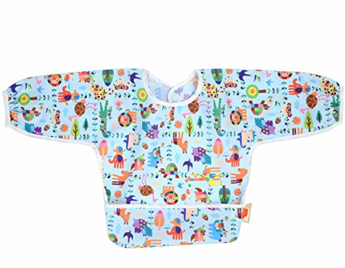 バンキンス 油が落ちるスリーブビブ【日本正規品】柔らかくて軽量 洗濯機で洗えてすぐ乾く お食事用防水ビブ 長袖タイプ 6~24ヶ月 Raindrops(ホワイト) ベルクロタイプ SUV167