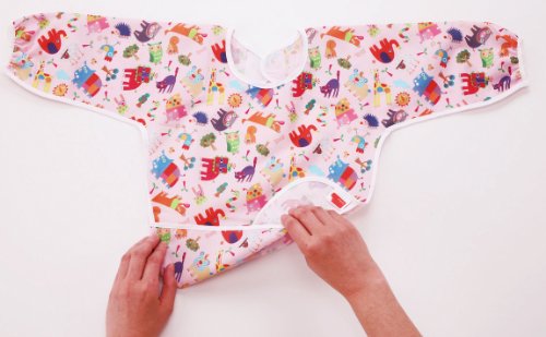 - 食べこぼしてもサッと拭ける防水加工素材! 長袖なのでお洋服を汚しません