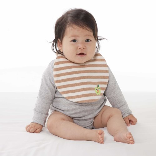 備考:首まわりには、赤ちゃんの大好きなフルーツモチーフと、柔らかで安心素材のオーガニックスタイできまり。 ストラップはスナップで取り外し可能。