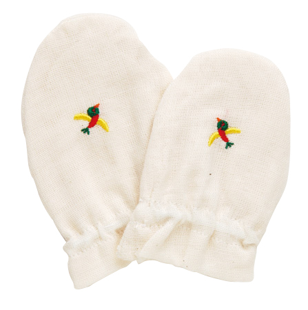 ★メール便(送料無料)からだを元気にするオーガニック素材と、心を元気にする刺繍デザインのコラボレーション。天然材質100%はもちろん、デザイン、刺繍にもこだわった究極のオーガニックアイテム。赤ちゃんのデリケートな肌を守るやさしいガーゼミトン 。