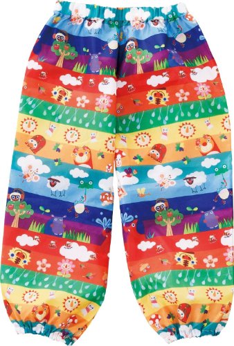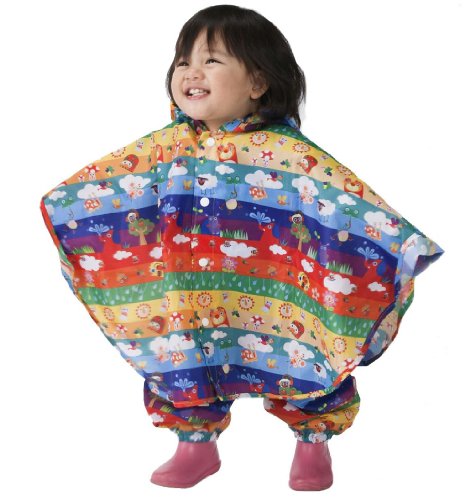 - レインポンチョとパンツの上下セットの「ぱんちょ」、雨の日のお出かけにポップで楽しいレインウエア、携帯に便利な巾着袋付きです