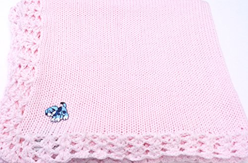 ニットかぎ針編み仕上がりピンクコットン赤ちゃんの毛布ブルー犬のアップリケ付き」を参照してください。米国製の最高級糸のみを使用で生産されています。認定されて健康に影響する任意のフタル酸エステル、鉛やその他の有害な物質を幼児