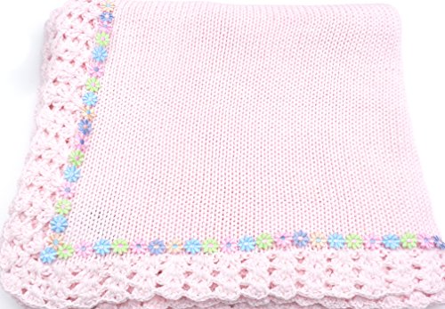 ニットかぎ針編み仕上げのコットンブランケットトリムピンク花柄リボンこのは手作業で生み出される最高品質の綿の米国では、認定されては鉛、フタル酸フリー
