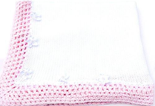 ニットかぎ針編み仕上がりホワイトコットンとピンクのトリムブランケットホワイトパール花にすることができます。これは手作りで最高品質のコットンでは、1米国と認定されたに鉛・フタル酸エステルフリー。
