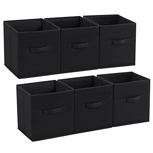 Songmicsのセット6ストレージキューブ折りたたみ式ファブリック引き出しストレージビンクローゼットオーガナイザー 10 1/4" x 10 1/4" x 11 1/8" ブラック UROB26H