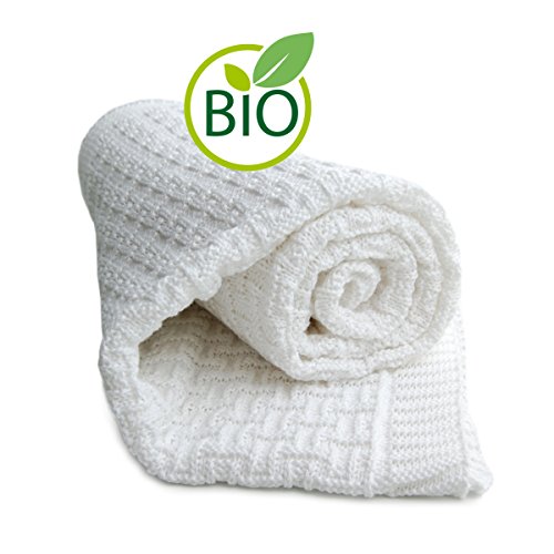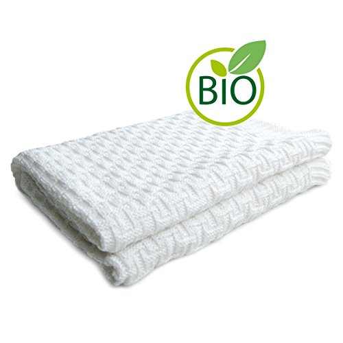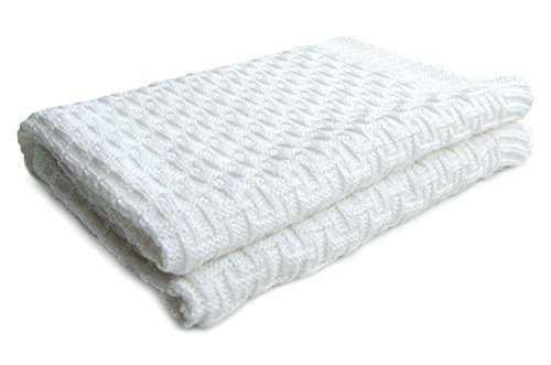 Elegant Baby 100% Cotton, Wide Cable Knit Blanket with Wide Ribbed Border 36 x 45 Inch in White by Elegant Baby
