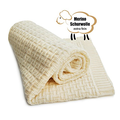 100% Made in Germany.;Certified by GOTS (Global Organic Textile Standard).;100% extra fine merino wool baby blanket. Only from an organic natural raw materials.;The baby blanket is very easy-care and also looks as a new even after a frequent washes. Machine washable 85 F degrees (30 C degrees).;The blanket size 35.5 x 35.5 inches) is perfect for a variety of uses. It can be used as a receiving blanket or crib blanket, can be taken on car trips or used in a stroller, and can be used as a swaddling blanket.
