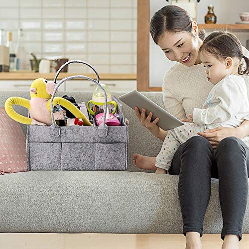 おむつストッカー Sorliva ポータブルおむつキャディーストレージグレーフェルトトラベルバッグガールボーイ おむつ おもちゃ ベビーエッセンシャルに最適