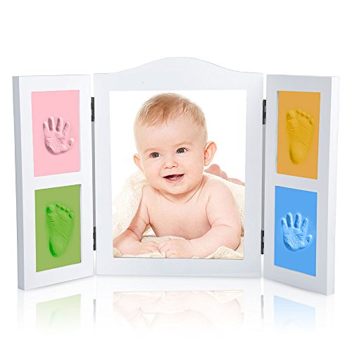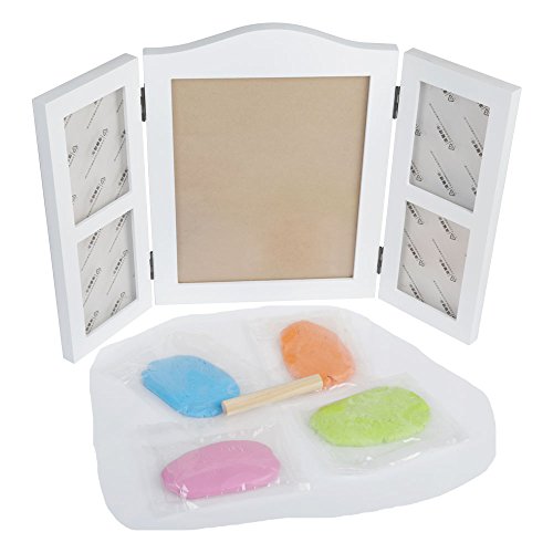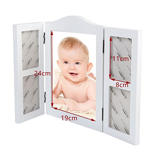 Sorliva ベビーフレーム 手形足形フレーム 木製フレーム 見開き三面タイプ 出産お祝い プレゼントとして最適 ベビー記念品 DIYフレーム 無毒で安全 四色粘土