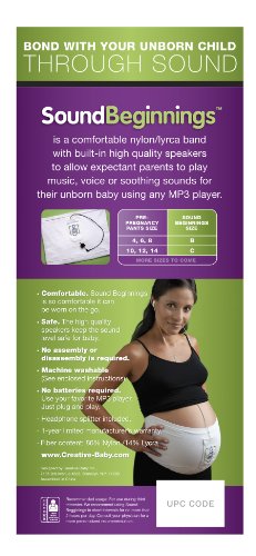 Sound Beginnings is a stretchy soft fabric band, there are no clips, Velcro or glue to keep speakers in place;The high quality speakers are designed to keep total sound output to a level that is safe for baby;No assembly or disassembly required; Sound Beginnings is completely machine washable;Just plug into any MP3 player/iPod and play, headphone splitter included allowing mom or dad to listen with baby;Sound Beginnings' quality double ply band will provide the support moms needs as she grows