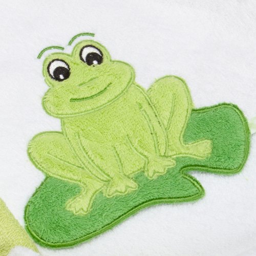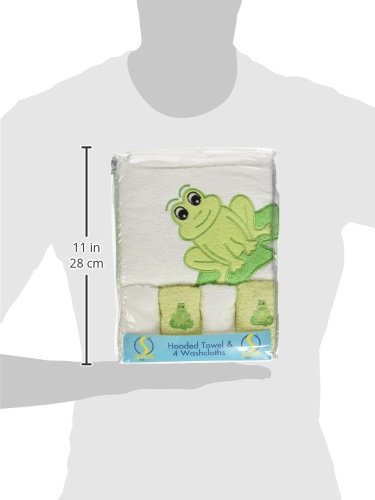 100% cotton terry - thick, soft and absorbent;Hooded to keep baby warm;Perfect for drying and wrapping baby after bath;Coordinated applique hooded towel with four washcloths;Perfect for shower gift