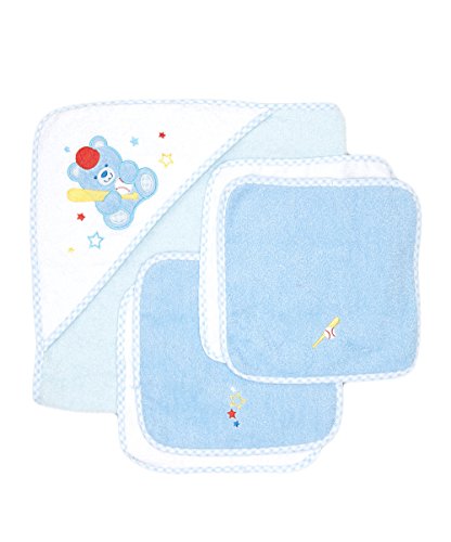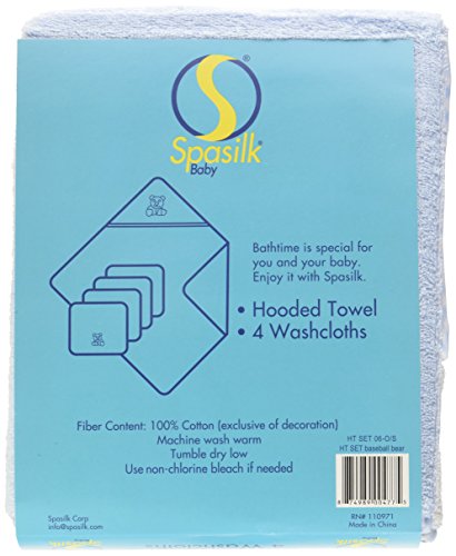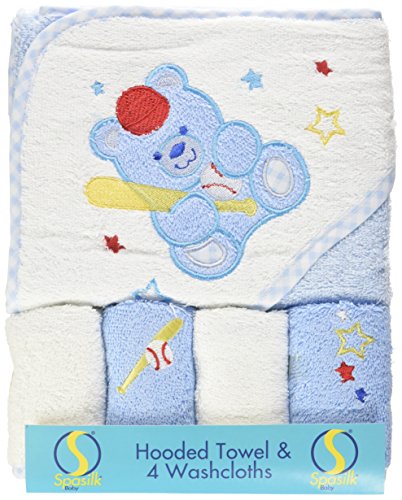 Spasilk 100% Cotton Hooded Terry Bath Towel with 4 Washcloths, Baseball Bear Blue by Spasilk