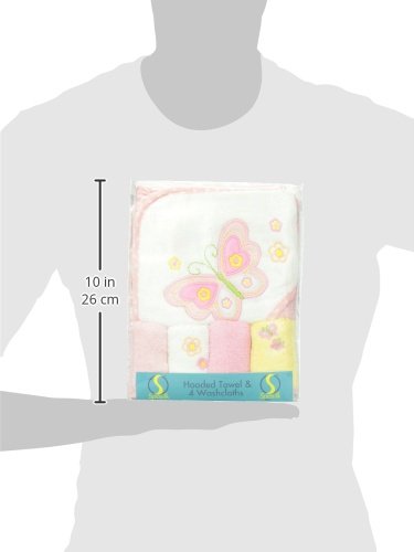 - Spasilk 100% Cotton Hooded Terry Bath Towel with 4 Washcloths, Pink Butterfly