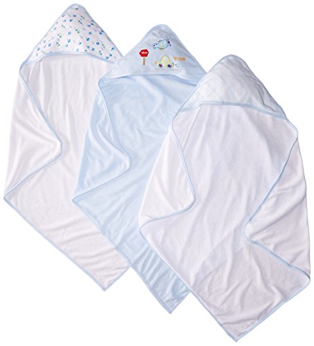 3 count super soft hooded towel set in coordinated prints and appliques, Hooded to keep baby warm, Brightly colored prints with matching applique, Soft, absorbent and easy to use, Perfectly sized and machine washable