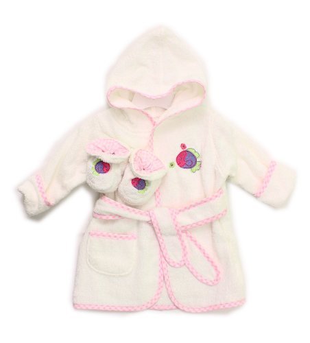 Spasilk 100% Cotton Hooded Terry Bathrobe with Booties, Pink Fish, 0-9 Months by Spasilk [並行輸入品]