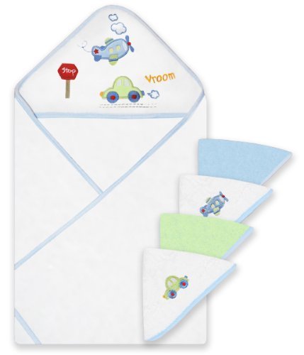 Spasilk 100% Cotton Hooded Terry Bath Towel with 4 Washcloths, Plane Blue/Green by Spasilk [並行輸入品]