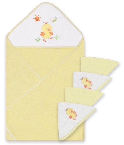Spasilk 100% Cotton Hooded Terry Bath Towel with 4 Washcloths, Duck Yellow by Spasilk