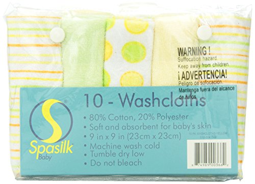 - Spasilk 10 pack Soft Terry Washcloth, Yellow