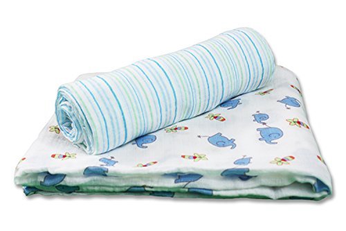 Spasilk 100% Cotton Muslin Swaddle Blankets, Blue Elephant, 2 Count by Spasilk [並行輸入品]