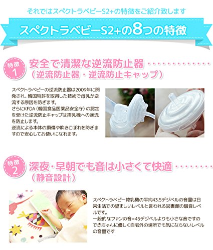 - 全米ベストセラーのスぺクトラS2プラスは従来品のS2に比べ重量も抑え、さく乳器の音も平均43.5デシベルに抑えられており深夜・早朝の授乳も静かで最適です。さく乳のテンポも小気味良く、ぜひバランスの取れたシンフォニーを体験して下さい。全米では優れた授乳用品として有名です。